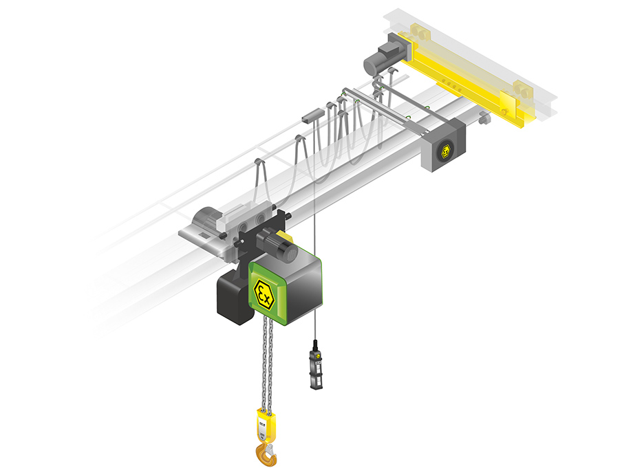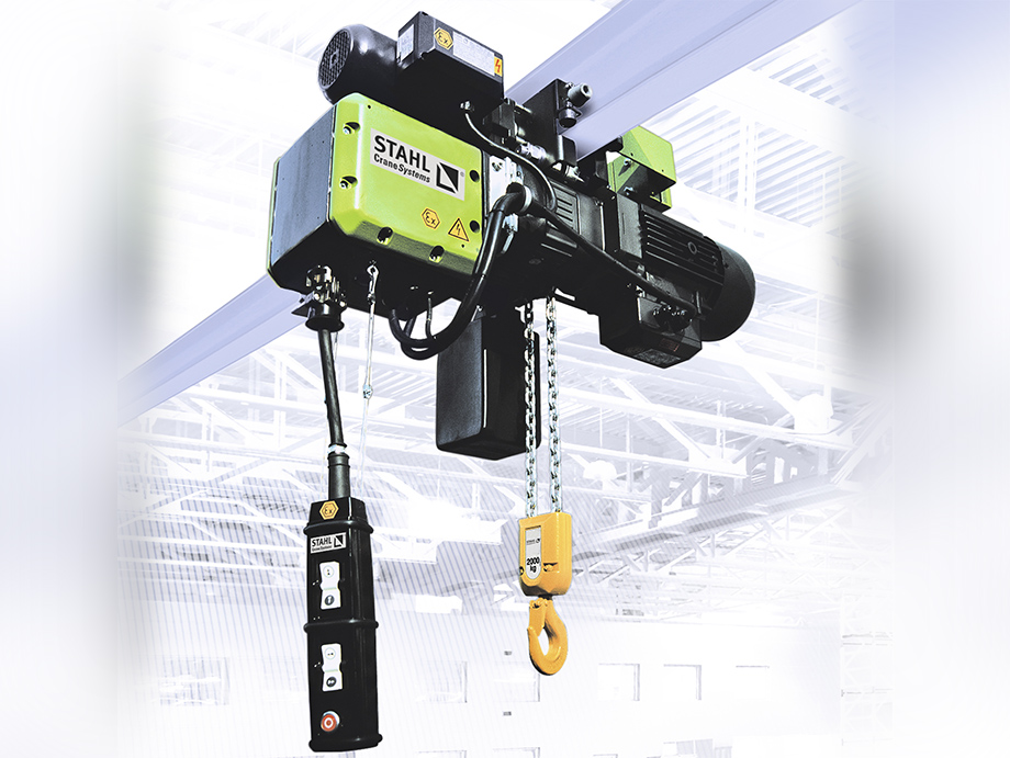 STAHL CraneSystems的STex系列防爆環(huán)鏈葫蘆符合EC 產(chǎn)品指令A(yù)TEX和國(guó)際IECEx標(biāo)準(zhǔn),適用于1區(qū)或21區(qū),也可適用于22區(qū)。STex系列防爆環(huán)鏈葫蘆有13個(gè)起重范圍,起重量從125公斤到6,300公斤,它功能強(qiáng)大、可靠性高、維護(hù)率低、功率消耗也不高,節(jié)約能源。除了標(biāo)準(zhǔn)結(jié)構(gòu)形式外,還有其他特殊形式可供選擇以及非標(biāo)定制解決方案。